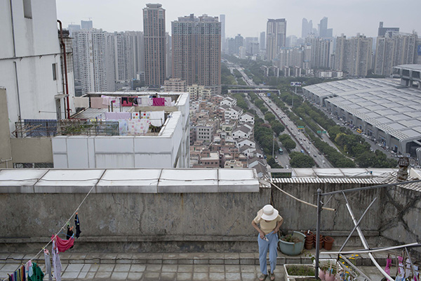 2016年4月3日,包養深圳市福田區一棟高層室第樓的露臺,一位住戶正在打理她蒔植的蔥苗,遠處的矮屋子是一個名為皇崗的城中村,和高層電梯樓比擬,異樣面積的屋子租價往往隻有一半擺佈。 彭湃消息記者 周平浪 圖