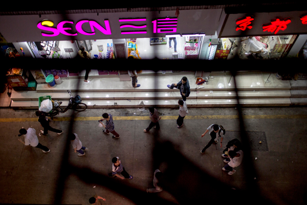 2016年4月6日,深圳市崗廈村,劉維顯租住的屋子窗外,街道上穿行著很多年青的面貌,大都人隻是這座城市的過客。 彭湃消息記者 周平浪 圖