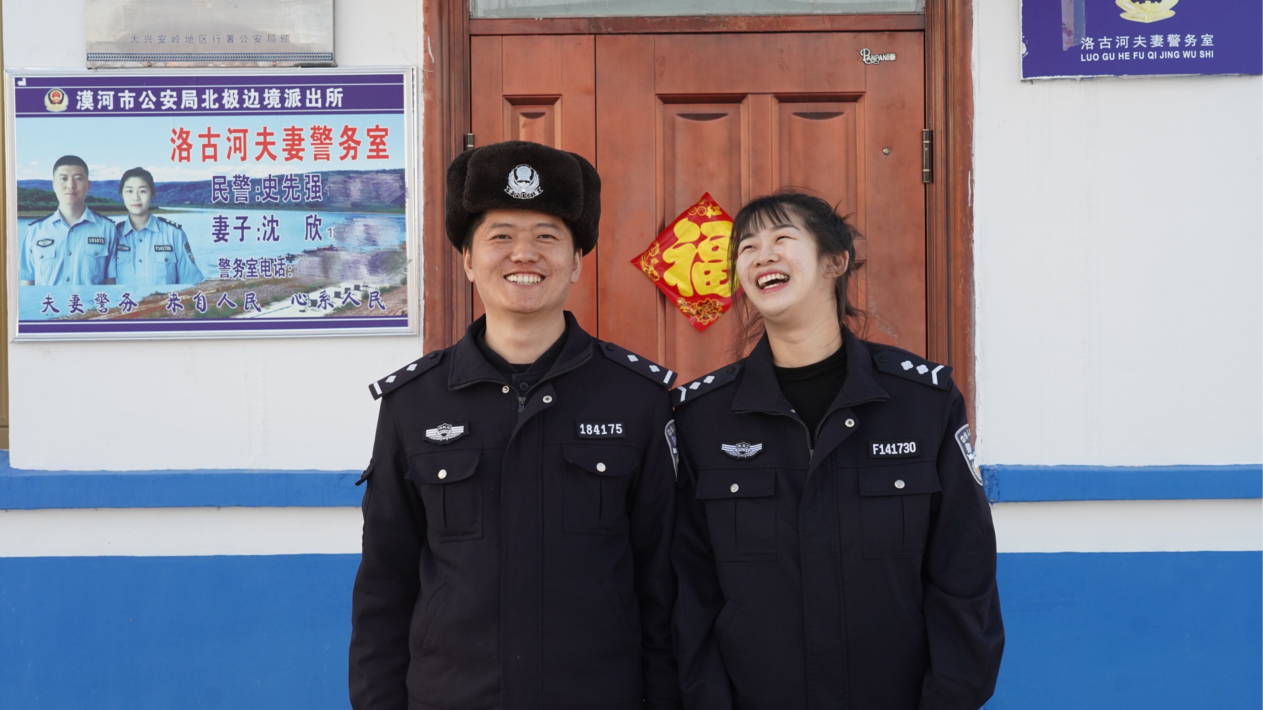 史先強和老婆沈欣就駐守在這裡。2010年,北極邊疆派出地點洛古河村建立瞭夫妻警務室,擔任管轄44公裡黑龍江段的邊疆線和洛古河村的安定。