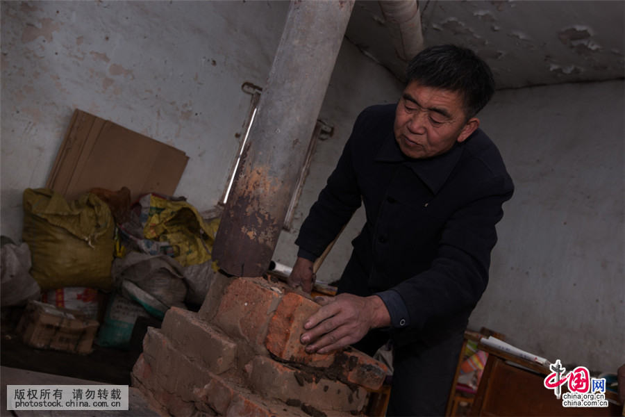 2016年3月23日,蘭占東給學生們砌爐子取暖。中國養生住宅網圖片庫 作者:蘭洋退休宅設計